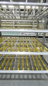 Regały przepływowe Carton Flow są projektowane w taki sposób, aby zawsze zapewnić pełną ergonomię dla obsługujących je pracowników. W regałach półkowych przepływowych towary magazynuje się na bieżniach rolkowych. Nachylenie bieżni umożliwia swobodne przesuwanie się towarów wprowadzanych z jednej strony, w stronę korytarza obsługowego.